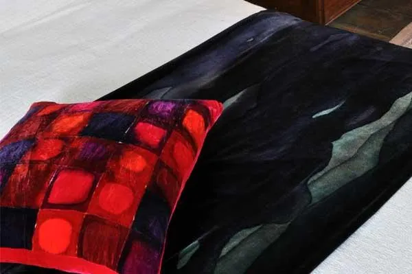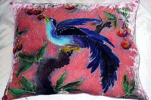 Parker and Arrol are Shrewsbury based designer-makers who specialise in handpainting silks, predominately using velvet. Handpainting allows us the freedom to produce bespoke pieces of any size, with no limit to the number of colours or subject. You can commission your own piece such as a cushion, scarf, coffin cover or buy from any of our stockists listed on the right. Please call us to discuss your requirements and we'd be more than happy to advise you. We now also offer Gift Vouchers as ideal presents for friends and family.